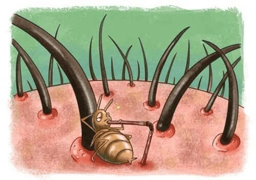 • رؤية حشرة صغيرة سوداء في فروة الرأس.